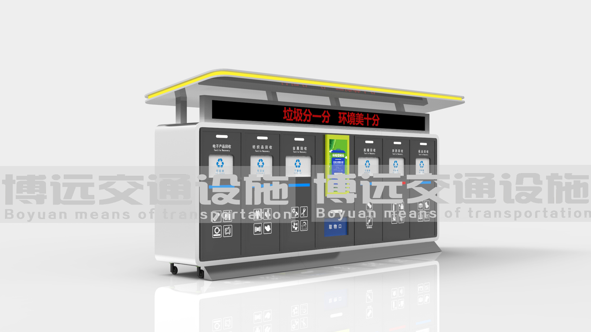智能垃圾亭,采用微電腦控制芯片,首創(chuàng)紅外線探測裝置,機(jī)械傳動裝置和連桿機(jī)構(gòu)組成,自動開關(guān)蓋,是集機(jī)、光、電于一體的高科技新產(chǎn)品,具有性能可靠,使用壽命長,耗電低等優(yōu)點(diǎn)。智能垃圾亭,人們無需接觸垃圾亭的任何部位即可投放垃圾,防止交叉感染,環(huán)保衛(wèi)生,外形雅觀;無需外接電源,使用普通電池,耗電低,使用壽命長;密封性能好,減少了生活中各種病菌交叉感染的機(jī)率,無垃圾異味溢出,確保四周空氣清新。