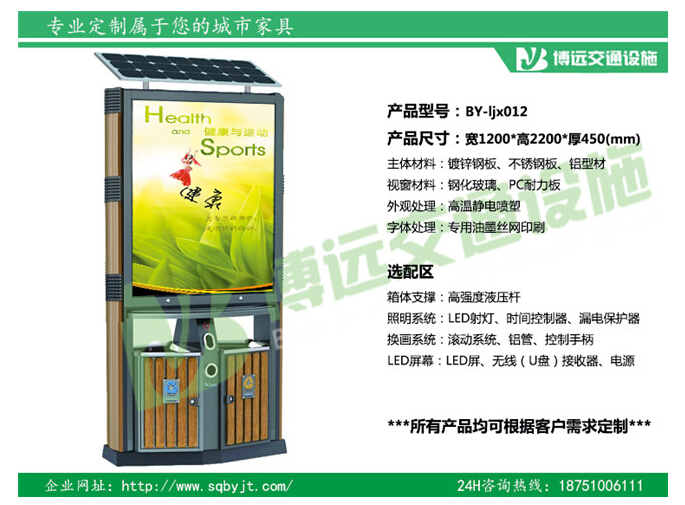 傳統(tǒng)的果皮箱或者環(huán)保果皮箱根本無(wú)法引起人們的注意,人們僅僅在丟垃圾時(shí)才會(huì)發(fā)現(xiàn),原來(lái)這還有個(gè)垃圾箱。至于保護(hù)環(huán)境,愛(ài)護(hù)垃圾箱更是空談,人們更多的是關(guān)注身邊美好的事物。垃圾箱為什么無(wú)法引人注目?其平庸的外觀設(shè)計(jì)便無(wú)法讓人受到民眾的愛(ài)護(hù)。人們都有愛(ài)美之心,美好的事物都喜歡用來(lái)保護(hù),假若,將垃圾箱設(shè)計(jì)得醒目些,外觀漂亮些,不就能夠受到人們的重視和保護(hù)了? 廣告果皮箱,便是基于這個(gè)思想而研發(fā)出來(lái)的,它經(jīng)過(guò)了專業(yè)的美工設(shè)計(jì),讓感觀沖擊力更強(qiáng),能夠能市民強(qiáng)烈的視覺(jué)效果。它多樣化的設(shè)計(jì)造型更能讓人賞心悅目,還有清晰的廣告大屏幕,能夠給民眾帶來(lái)不一般的感覺(jué)。廣告果皮箱便能夠讓人不由升起保護(hù)的心理,能夠使得我們?cè)谌永鴷r(shí)變得沉穩(wěn),而不再是隨手一扔,其多樣化的造型更能讓我們不至于產(chǎn)生感觀的疲勞,并且在其執(zhí)行垃圾箱的功能同時(shí),更能為一個(gè)城市帶來(lái)不少的廣告收益,能夠?yàn)槠髽I(yè)產(chǎn)品的推廣宣傳作極大的促進(jìn)作用。對(duì)于城市的環(huán)保建設(shè)和經(jīng)濟(jì)發(fā)展都有著積極的影響。